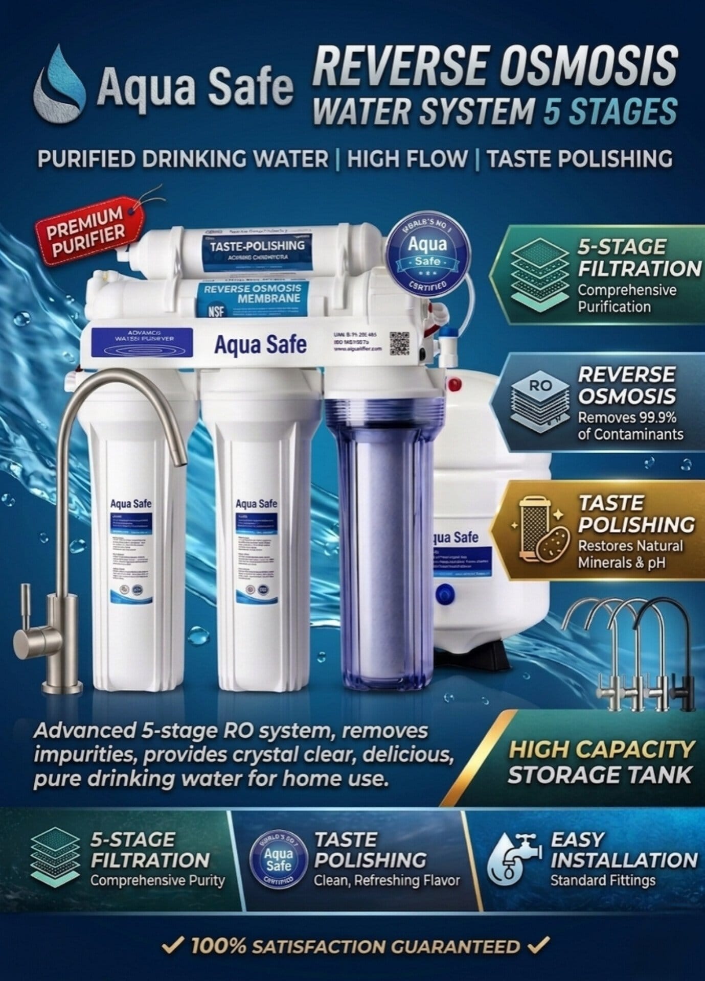 Aqua Safe 5 Stages Reverse Osmosis Water Filtration System in Rawalpindi & Islamabad | Best RO System Pakistan
